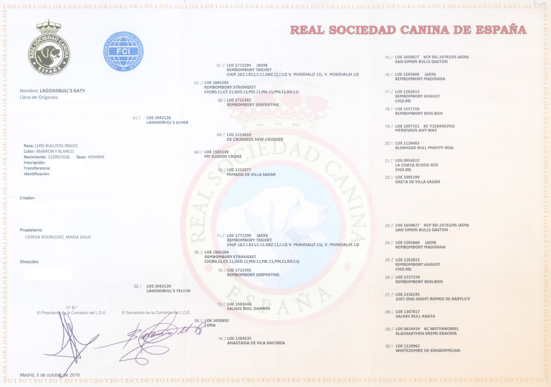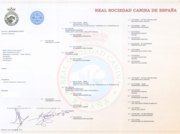 Katy Lagoasbull´s Algunos de nuestros clientes nos dan las gracias muy a menudo, siempre hacen referencia al buen trato y a la calidad de los perros que entregamos y por ellos os dejamos algunos de los testimonios de aquellos que ya nos compraron un BullDog Inglés ÁRBOL GENEALÓGICO